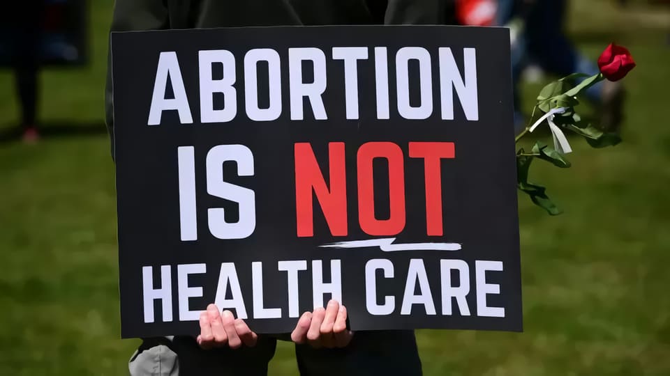 Tidningen Dagens artikel om en demonstration mot president Obamas sjukvårdsreform som möttes av plakat med texten ”Abort är inte sjukvård”, vilket också avspeglas i rubriksättningen,